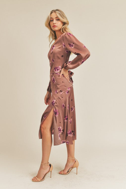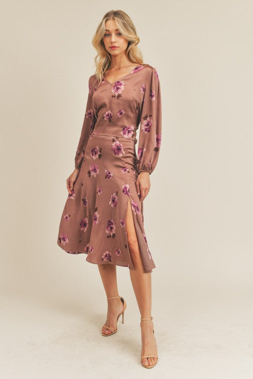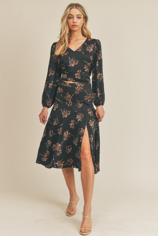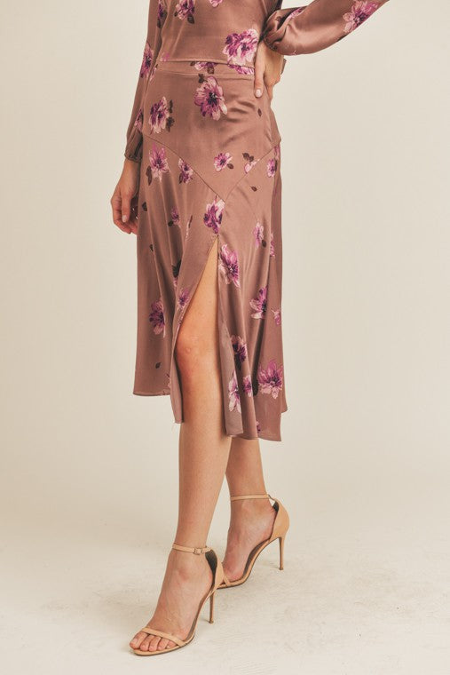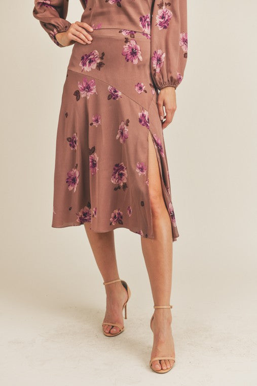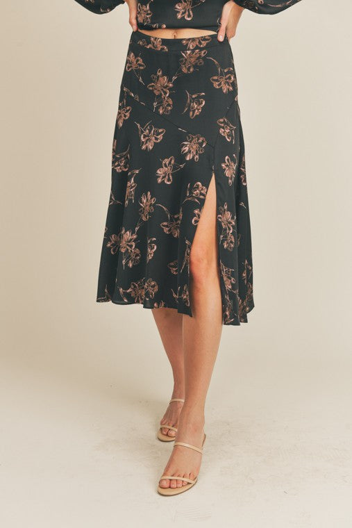 Side Slit Floral Print Skirt