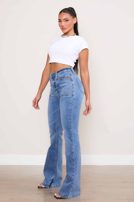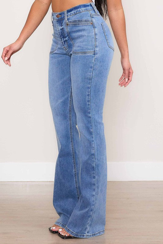 Introducing our Square Pocket Bootcut Jeans, the perfect blend of style and functionality for your everyday wardrobe. These jeans feature large square front pockets that add a touch of modern flair to the classic bootcut silhouette. Crafted with attention to detail, they also include back pockets for added convenience and a zip-fly closure for easy wear. Made from high-quality denim, these jeans offer both durability and comfort, making them suitable for all-day wear.